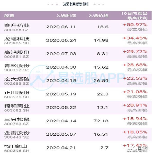 策略近期的表现连获牛股,牛气冲天,其中赛升药业收益过半,而龙蟠科技高鸿股份都有大幅获利!