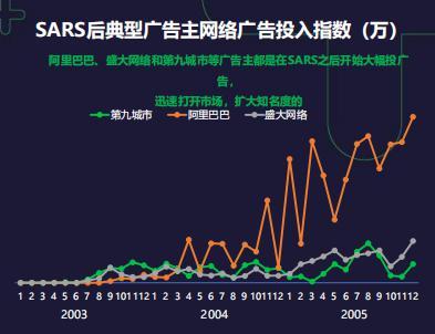 尤其是网络游戏、电商等移动互联网行业,在SARS后迎来黄金发展期。阿里巴巴、盛大网络和第九城市等广告主是在SARS之后开始大幅投广告。这些公司由此迅速打开市场,扩大知名度。