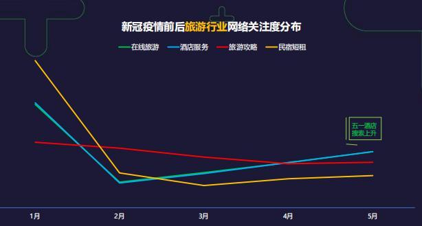 第三,对旅游行业来说,由于2月份疫情期间提倡人们减少外出流动,旅游行业受到较大冲击。但在3、4月份逐步进入疫情恢复期后,旅游行业消费信心开始恢复,酒店服务业率先抬头,旅游攻略、民宿短租领域关注度也逐步提升。