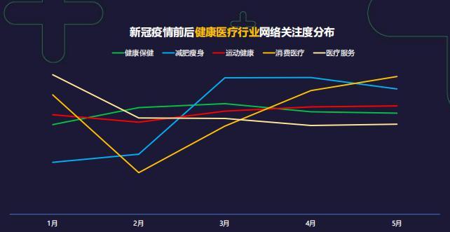 第六,在健康医疗行业,原本受关注度较大的消费医疗,由于疫情的原因在2月份关注度降至冰点。后随着疫情得到控制,人们的爱美之需逐渐恢复,消费医疗迎来触底反弹。关注度同样上升较快的还有减肥瘦身领域,这也体现了人们对美的追求。同时,人们在疫情影响下更加注重健康养生,由此健康保健、运动健康细分领域呈稳中有升态势。