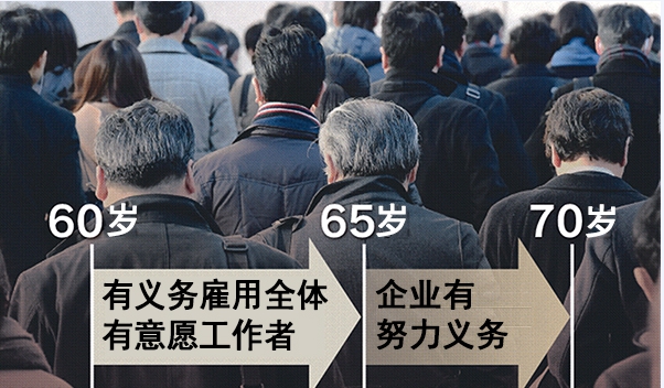 日本现行的《高年龄者雇用安定法》规定企业在全体有意愿者的65岁以下人员予以雇用。日本60-64岁老年人的就业率2018年为68.8%,比2013年提高9.9个百分点。