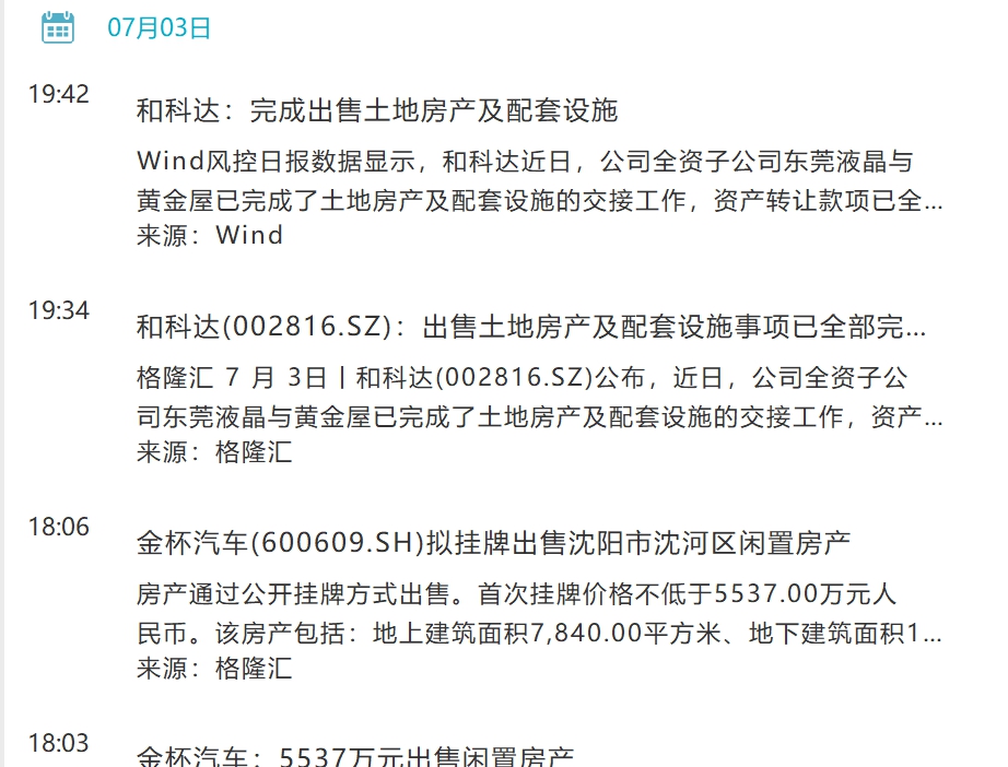 7月3日晚,还有一大批上市公司公告出售房产