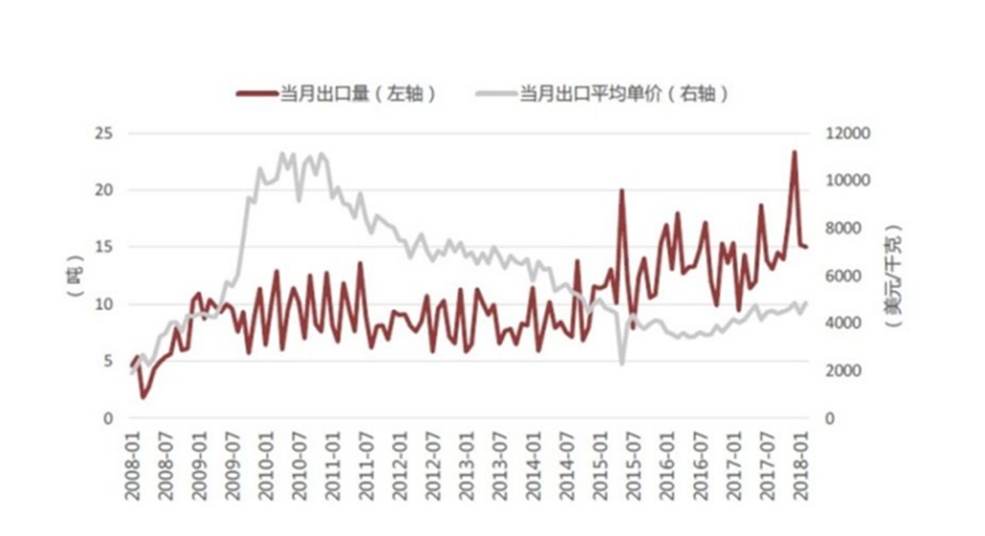 肝素钠及盐(原料药)十年出口量价变化(来源:网络)