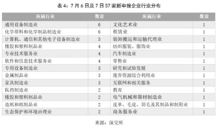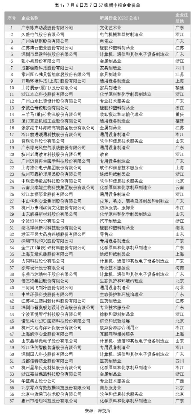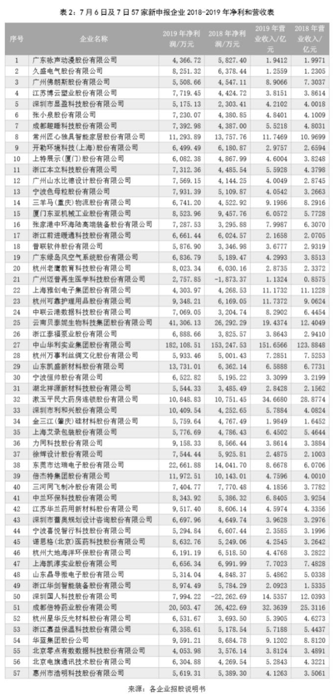 深交所数据显示,7月6日、7日受理的57家新申报的企业选定的标准均为:最近两年净利润均为正,且累计净利润不低于5000万元。