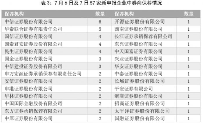 关于保荐机构,有28家券商抢到“头筹”,其中,中信证券、华泰联合保荐项目较多,分别为6个和5个。