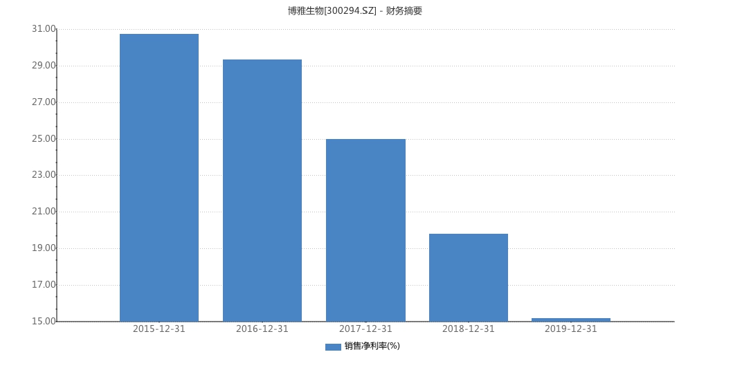 博雅生物近五年销售净利率情况(%)