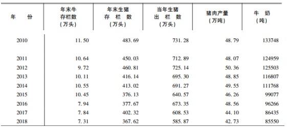 (2010-2018年成都市生猪数据。图片来源:成都市统计年鉴)