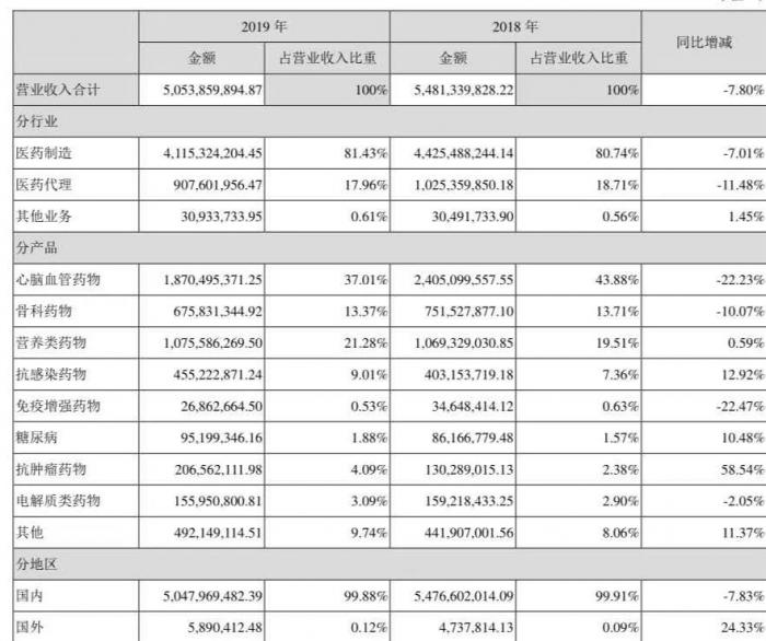 2019年,由于计提商誉减值准备约26亿元,誉衡药业出现上市首亏,几乎亏掉上市以来所有盈利。根据誉衡药业年报,公司期内实现营收50.54亿元,同比下降7.8%;归属于上述公司股东的净利润为-26.62亿元,同比下降2214%。