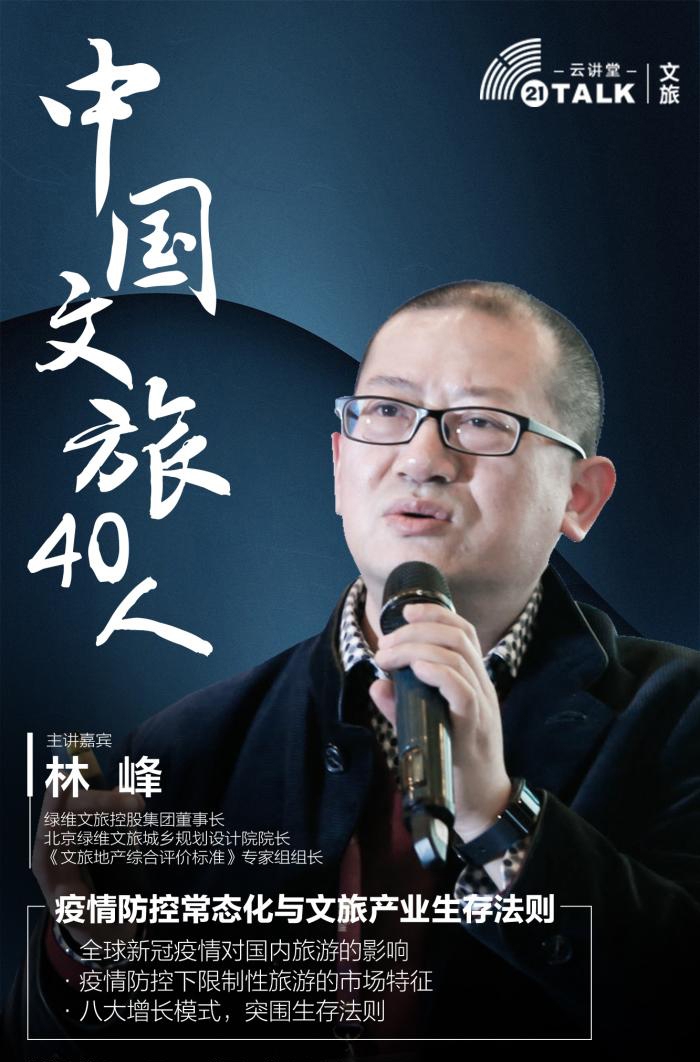本期「21TALK丨中国文旅40人云讲堂」邀请到有30余年旅游综合开发与旅游地产顾问的从业经验的绿维文旅控股集团董事长、北京绿维文旅城乡规划设计院院长林峰,为市场解读“疫情防控常态化与文旅产业的生存法则”。