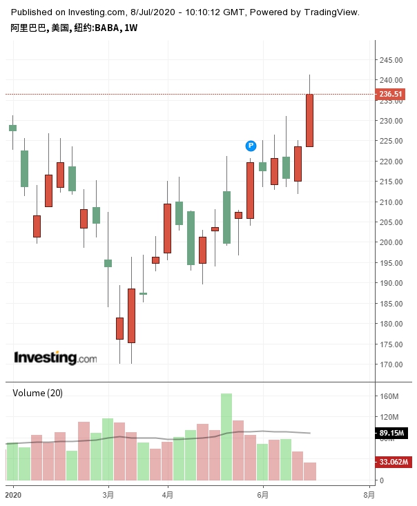 其次,越来越多的华尔街投资者正在押注中国在“后疫情”时代的经济恢复会优于美国的恢复步伐。而阿里巴巴是这场押注的“C位”标的,近期阿里巴巴也正在加入其它互联网公司的行列,不断创出新高。