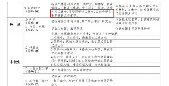 临近毕业,高校就业指标出现了变化。近日,教育部发出《严格核查2020届高校毕业生就业数据的通知》(下称《通知》),其中配套的就业统计指标中首次加入了“自由职业”,并计入就业率。《通知》拓展了原有“自由职业”的内容,加入了互联网营销工作者、公众号博主与电子竞技工作者。