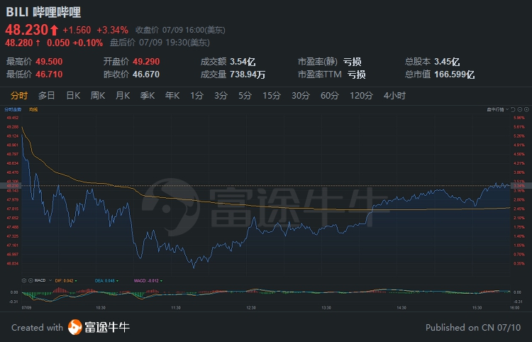 哔哩哔哩被传赴港二次上市,股价涨超3%