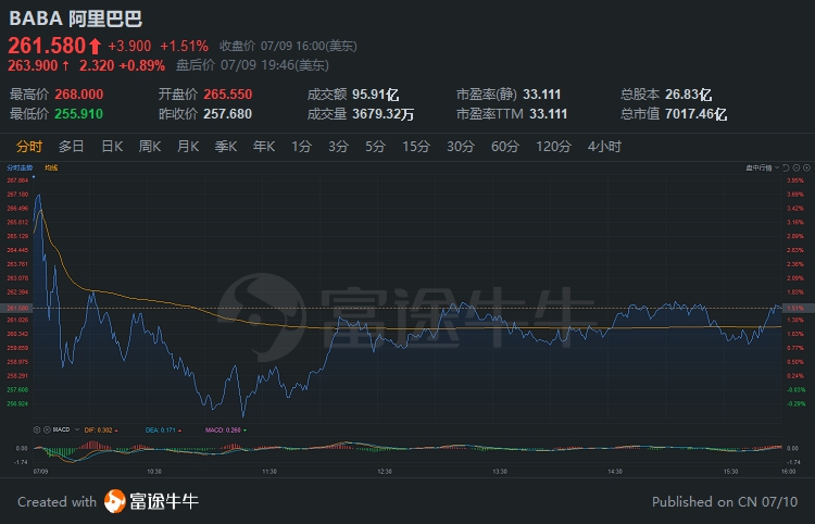 昨晚阿里巴巴的股价也收涨1.51%,创下历史新高,市值超过7000亿美金