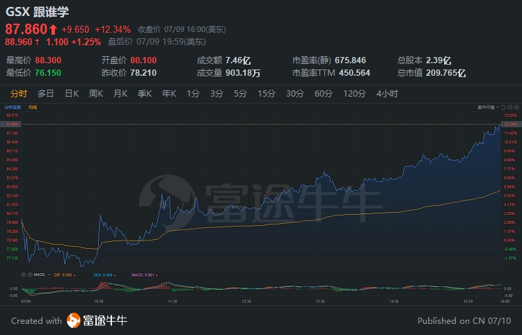 跟谁学股价周四继续大涨,三日累涨近40%,继续刷新历史新高,市值突破200亿美金。