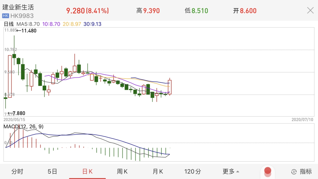而另一只物业股建业新生活在开盘前三日一路大涨,随后开始走“下坡路”。自6月起,建业新生活的股价在波动中呈下滑趋势。截至7月10日,该公司的股价涨超10%。