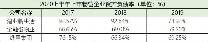 从已上市的3家物业管理公司来看,其中金融街物业及烨星集团近三年的资产负债率均未到80%红线。