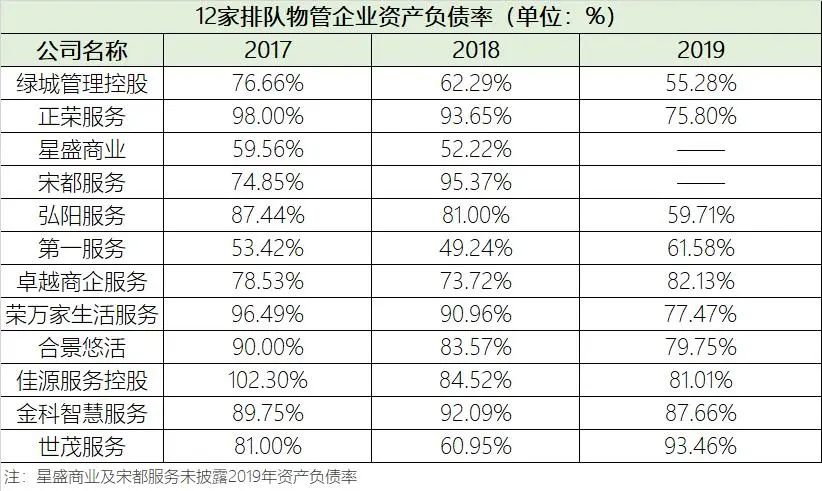 上述排队赴港上市的物管企业的资产负债情况如何?