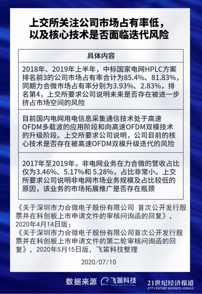 第三个问题,为非电网业务开拓难度大的问题。据招股书数据,2017年至2019年,非电网业务在力合微的营收占比仅为3.46%、5.17%和 5.28%,占比非常小。上交所要求公司说明,非电网市场业务规模及占比较低的原因,该业务的市场拓展推广是否存在瓶颈。