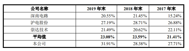 据招股书显示,报告期各期末,生益电子应收账款余额分别为4.74亿元、5.83亿元及9.88亿元,占当期营业收入的比例分别为27.71%、28.38%和31.91%,而可比上市公司该数据平均值则为21.41%、23.59%、23.08%。
