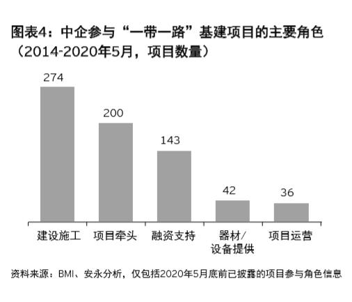从中企参与“一带一路”项目所担任的角色来看,建设施工(占总项目数量的47%)依然是中企参与的最主要方式,其次是项目牵头(占总项目数量的34%)和融资支持(占总项目数量的27%)。然而随着中企国际化发展的需要,安永预计中企将不断扩展在“一带一路”基建项目中的业务范围,更多地参与到投资和运营等环节,并通过工程承包带动设备、设计和管理等达到全方面一体化“出海”。