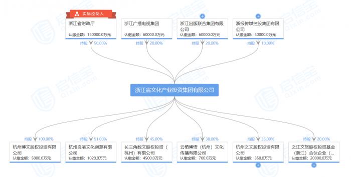 启信宝数据显示,浙江文投由浙江省财政厅持股50%,浙江出版联合集团有限公司持股20%,浙江广播电视集团持股20%,浙报传媒控股集团有限公司持股10%。