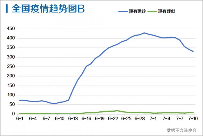 7月10日,全国(不含港澳台,下同)新增确诊病例2例,均为境外输入病例(辽宁1例,广东1例)。其中,北京连续5天确诊病例零新增。全国现有确诊病例330例,较前一日减少12例。