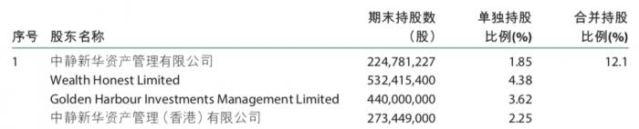 此外,中静新华还通过旗下三家境外公司(Wealth Honest Limited、Golden Harbour Investments Management Limited、中静新华资产管理(香港)有限公司)持有徽商银行约12.46亿H股。徽商银行2019年年报显示,上述四家公司的实际控制人均为上海宋庆龄基金会。