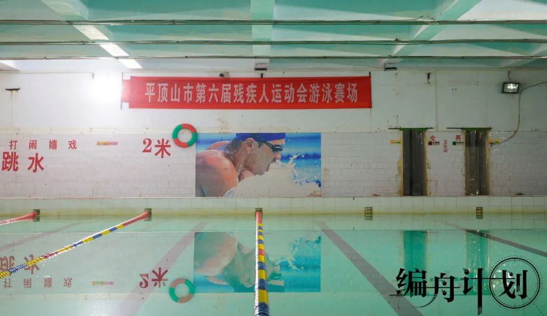 他带我去他当年训练的游泳馆看了看。从9岁起,他就在这里训练,成长。二十多年过去,游泳馆几乎没有变过,只是因为煤矿行业的变化,冬天暖气没有当年那么足了。这两年,他也会在自己当年训练的游泳馆兼任教练,学生既有残疾人,也有肢体健全的孩子。有些孩子不知道许庆的来历,看见他很惊讶,但是久了也就熟悉了。