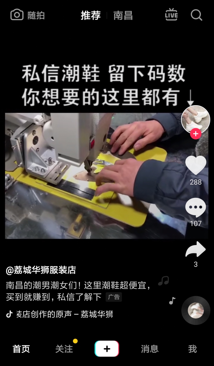 最近,她多次在抖音上刷到潮鞋广告,点进页面发现,鞋子来自福建莆田。