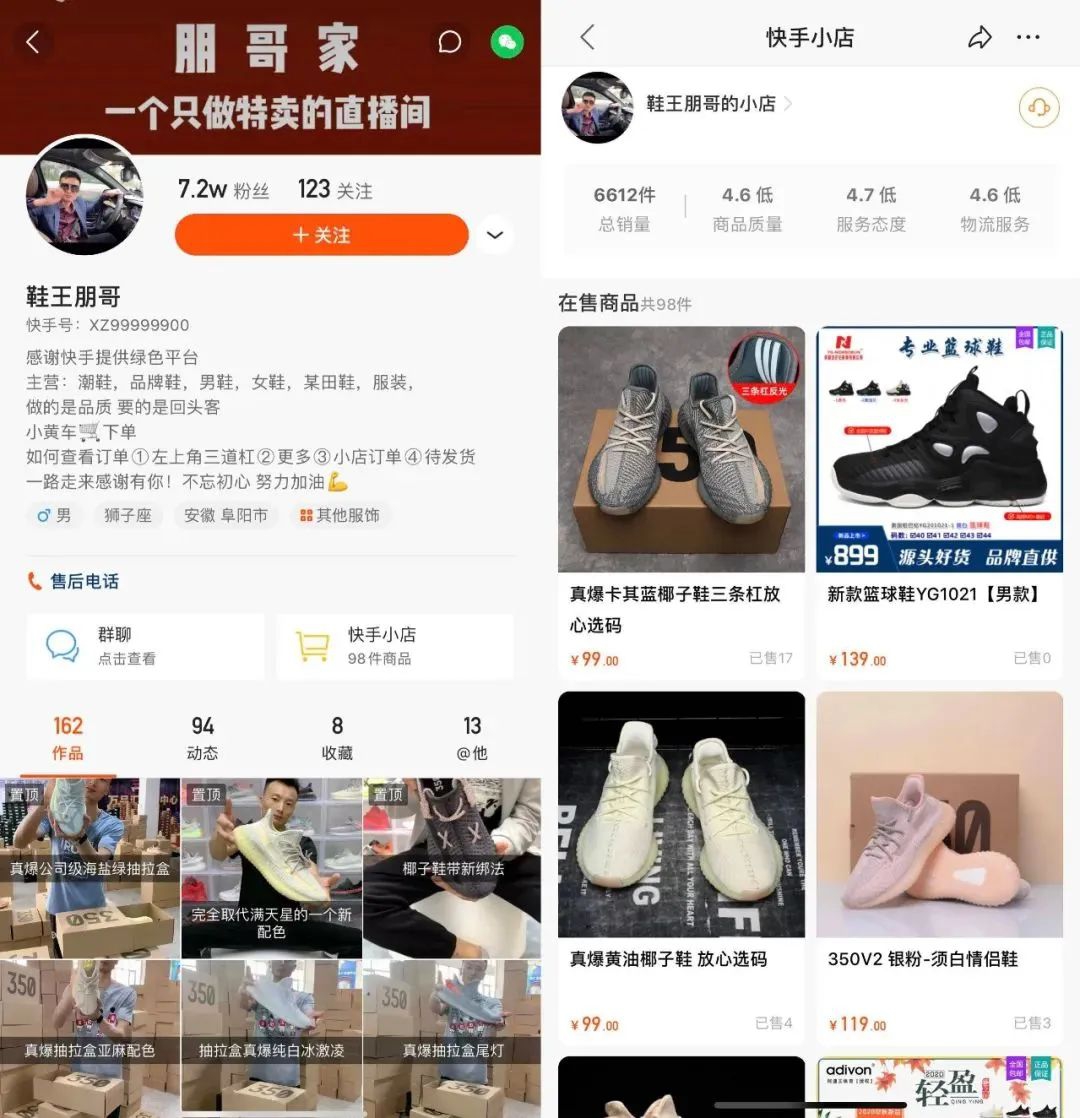 ▲“鞋王朋哥”快手博主的主页、快手小店