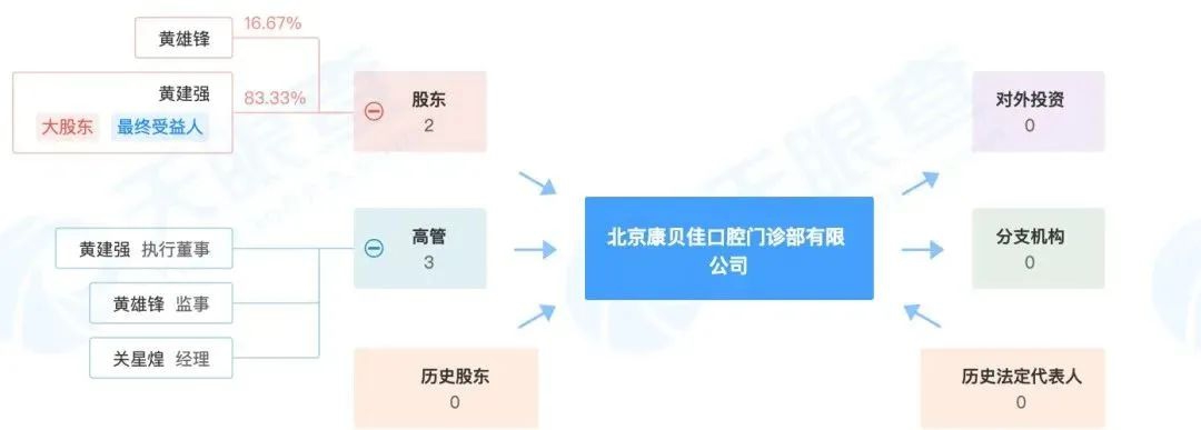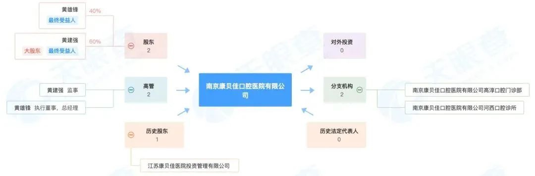 北京康贝佳口腔门诊部有限公司的控股股东黄健强,同样控股着南京康贝佳口腔医院有限公司,而后者多次进入媒体披露的《莆田系口腔医疗机构名单》。