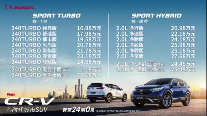 7月10日,东风本田全新CR-V正式上市,锐•T动和锐•混动两种动力版本共17款车型,售价区间为16.98-27.68万元。