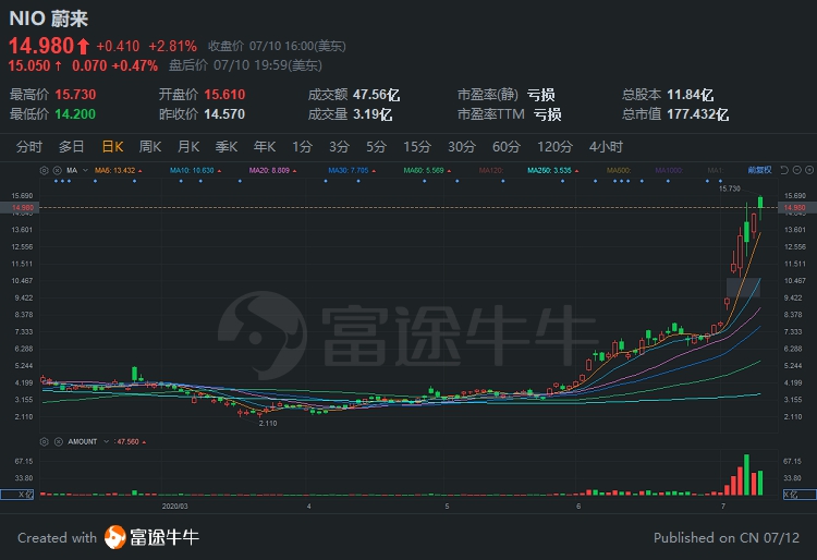 1、「新能源新势力」国产龙头蔚来延续上周强势涨幅,本周共录得59.7%涨幅。尽管目前仍处于亏损状态,但新能源汽车的热度在近期持续升温,蔚来、特斯拉头部公司股价均创新高,国内另一家新能源汽车公司「理想汽车」也准备赴美上市。