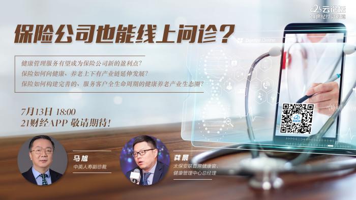 7月10日,中英人寿副总裁马旭做客21云论坛,就保险公司线上健康管理服务等话题进行分享。