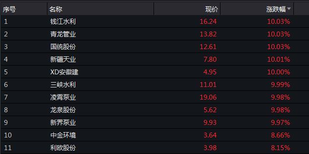 这一预期显然在更早前就对部分水利股形成了带动作用,7月13日当天,钱江水利、国统股份等多只不少于9只个股冲击涨停。