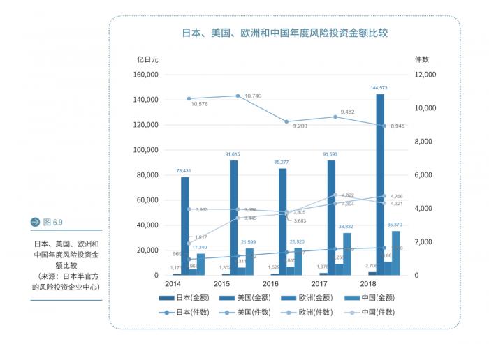 让我们先来看一组数据,日本半官方的风险投资企业中心公布的数据显示,2018年美国年度风险投资金额为1445亿美元,中国为354亿美元,日本仅为27亿美元。