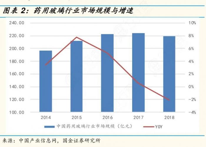 《2019年注射剂玻璃包材行业分析报告》显示,注射剂瓶占药用玻璃总量的55%,是药用玻璃的主要产品之一。国金证券报告显示,药用玻璃市场规模自2014-2018年持续递增,2020年在新冠疫苗研发、全球中鹏硅玻璃紧缺的情况下,预计市场规模将进一步扩大。