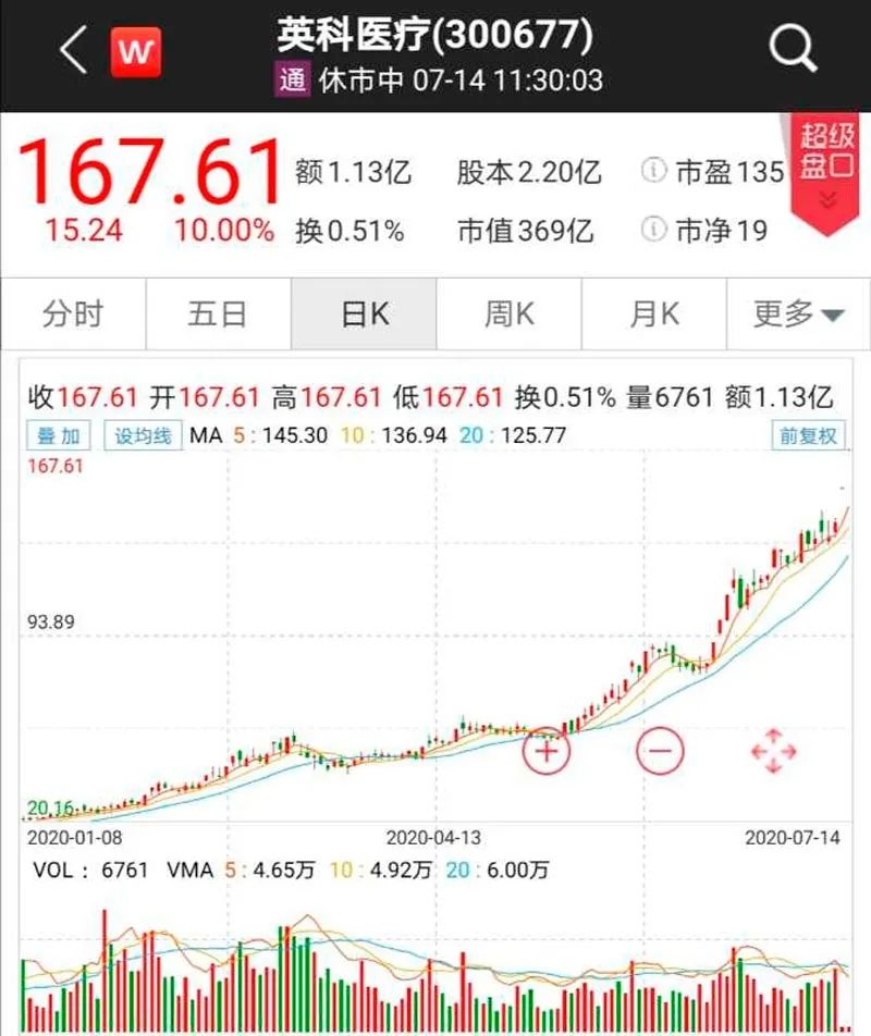 今日,英科医疗股价走出“一字涨停”。截至午间收盘,英科医疗涨停板封单保有5.23万手,最新价报167.61元/股,较去年年末收盘价16.56元/股大涨913%。