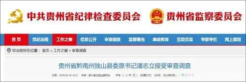 2019年3月19日,贵州省纪委监委网站发布消息:贵州省黔南州独山县委原书记潘志立涉嫌严重违纪违法,目前正接受贵州省纪委省监委纪律审查和监察调查。