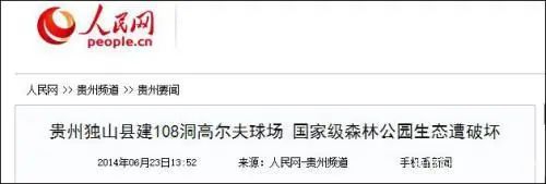 2014年6月,人民网曾发文《贵州独山县建108洞高尔夫球场 国家级森林公园生态遭破坏》称,独山县紫林山国家森林公园内2万余亩山林被破坏。