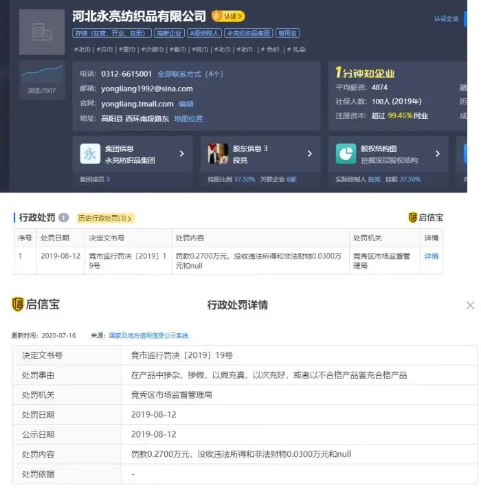 这些下脚料、甚至旧衣服加工的再生棉,没有标注任何产品信息及警示语,就卖到纱线厂做成了纱线,纱线上同样也不标注产品信息及警示语,就卖给了毛巾厂,最终做成毛巾。而对于原料中存在的各种问题,各环节的从业者都心知肚明。“这种不合格的毛巾,贴着符合国标的标签,通过中小超市、批发市场、电商等销往全国各地。”一位纺织品公司总经理告诉记者,这种达不到检测标准的毛巾,他们一年的销售额大概能卖到五千万元。