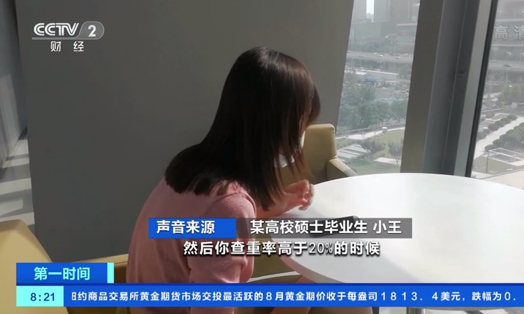 某高校硕士毕业生 小李:我查了两次,我第一次查的重复率是(百分之)十五点多,然后又修改了,第二次查到了(百分之)七点多,因为怕学校查的时候,我如果万一再高一点的话就可能会比较危险。