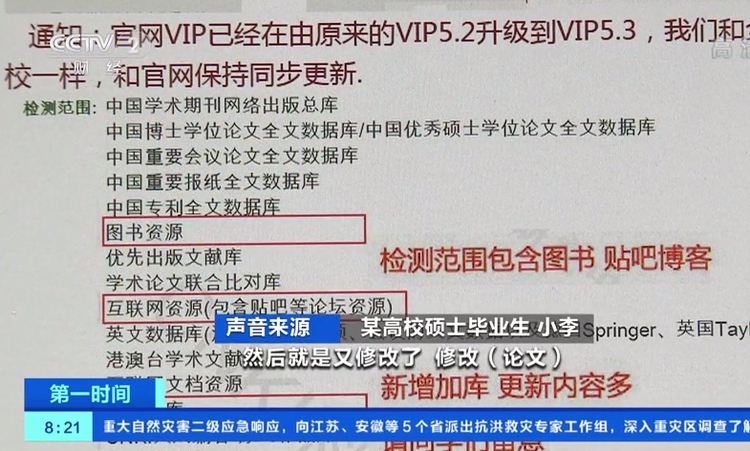 某高校硕士毕业生 小王:你交上去(论文)学校给你查重,高于20%的时候,学校的规定就是可能需要延期毕业半个月或者一个月。所以我们就会在学校要查重之前,我们自己查重,就保证到时候学校查重的时候可以过,就可以正常毕业。