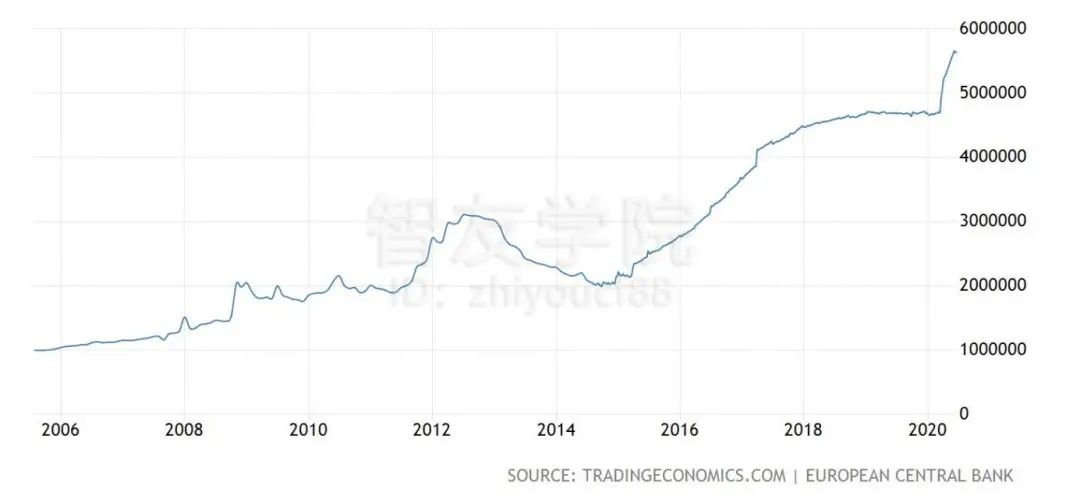 我们来看看现在货币放水有多厉害,下面是各国央行的资产负债表规模的变化: