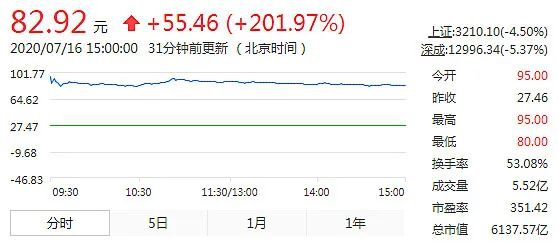 7月16日,中芯国际终于登陆A股市场,发行价27.46元,收市为82.92元,涨幅为202%,市值站上6000亿人民币。
