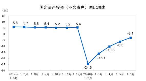 上半年,全国固定资产投资(不含农户)281603亿元,同比下降3.1%,降幅比1-5月份收窄3.2个百分点,比一季度收窄13.0个百分点。