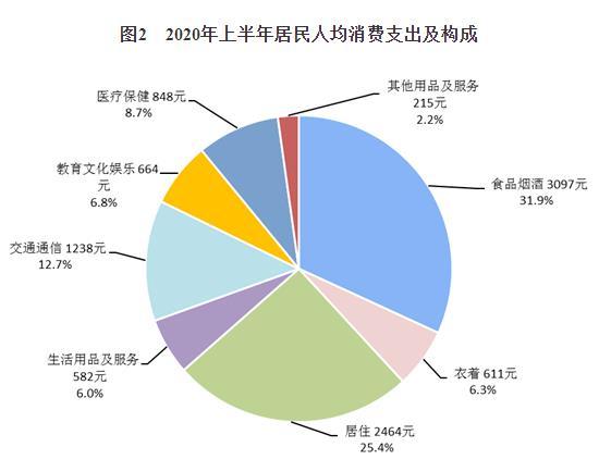 上半年,全国居民人均消费支出9718元,比上年同期名义下降5.9%,扣除价格因素,实际下降9.3%。其中,城镇居民人均消费支出12485元,下降8.0%,扣除价格因素,实际下降11.2%;农村居民人均消费支出6209元,下降1.6%,扣除价格因素,实际下降6.0%。