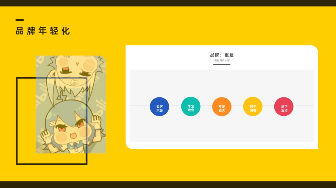 从这个发展过程中你会发现,B站的产品和品牌核心在于围绕年轻人的需求和文化进行延展。或者说,「B站=年轻人」的标签并不是刻意为之,而是通过内容的扩展、产品的丰富,变成了一个水到渠成的结果。