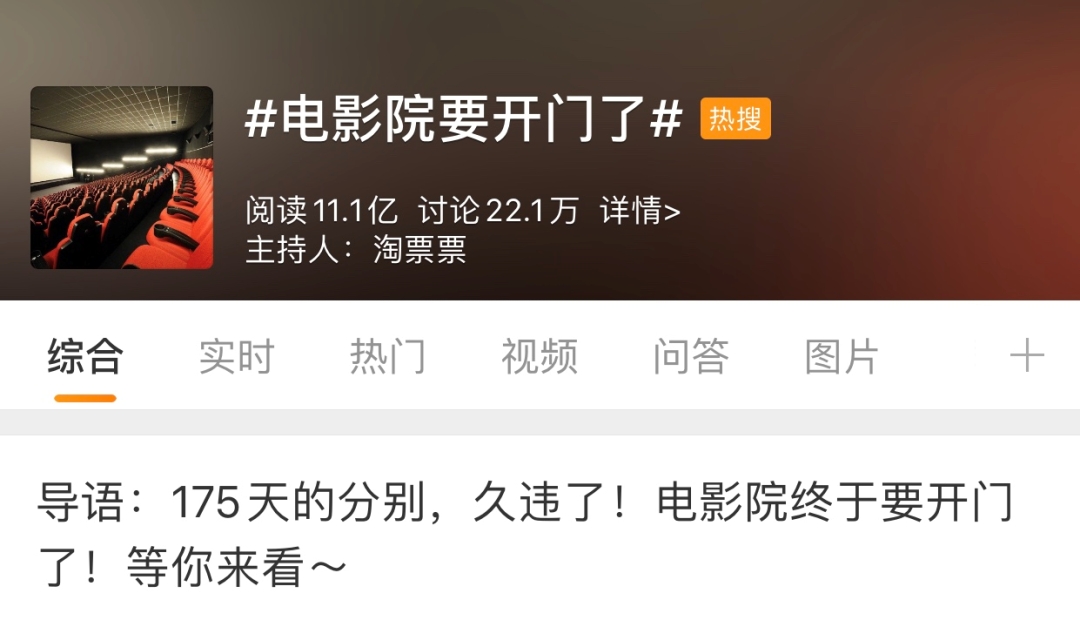 就在昨天官宣影院“有条件”复工后,#电影院防疫公益短片#也一度刷屏。