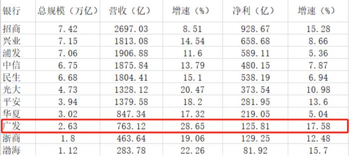 根据广发银行披露,截至2019年末,该行资产总额为2.63万亿元,较年初增长11.52%。
